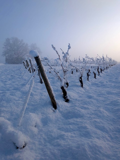 Au domaine, l’hiver est bien plus qu’une saison de repos : c’est une période fondatrice où se dessine déjà la qualité des futurs vins. Dans les vignes, le travail de taille hivernale, mené avec rigueur, structure la vigne et prépare l’équilibre de la future récolte. Chaque geste est réfléchi afin de maîtriser les rendements, favoriser la croissance harmonieuse et préserver la longévité du vignoble. Pendant ce temps, en cave, les vins issus du dernier millésime poursuivent leur évolution. Loin de l’agitation des vendanges, l’hiver permet aux vins de s’affiner lentement. Ils gagnent en équilibre, en harmonie et en profondeur, révélant progressivement leur personnalité. Les élevages sont suivis avec attention, dans le respect de l’identité du terroir. Ainsi entre la vigne et la cave, l’hiver s’impose comme une période fondamentale, discrète mais essentielle. C’est dans ce temps long, fait de patience et de savoir-faire que se prépare la finesse de nos vins.